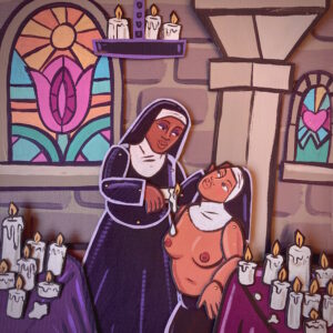 Rory Midhani is a visual artist creating mixed-media pieces, murals, paintings, and illustrations. He makes work centered on the lives of Queer & Transgender people, with an emphasis on celebration and freedom. He has been featured in publications and exhibitions across Europe, North and South America, and has worked as an illustrator for an international client base. Rory’s work is held in several archives, including The Tom of Finland Foundation and The Centre for the Study of Political Graphics.