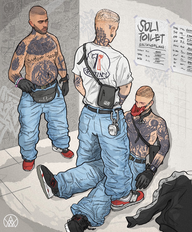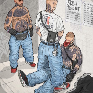 Andy Warlord is a fetish comic artist living and working in Berlin. He studied illustration in Germany and New York. His comics introduce new alternative kink character archetypes in their “uniforms”, intervening in a fetish scene that has been predominantly preoccupied with police and military aesthetics. His artwork is an unapologetic display of deviant fetishes and a celebration of utopian camaraderie between queers. He has shown his work at Darklands in Antwerp, at Fetish Pride in Maspalomas, and created the artwork for Folsom Europe 2025, among others.